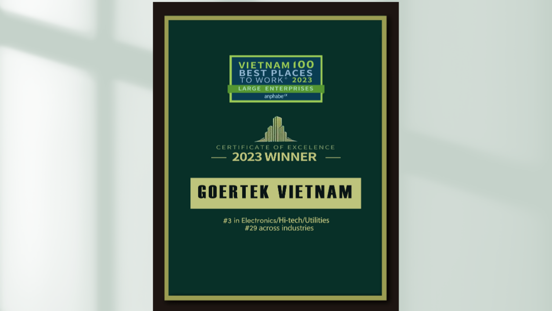 The Award, jointly issued by business consultants Anphabe and Vietnam Chamber of Commerce and Industry (VCCI), is based on results surveyed from 64,000 employees of more than 700 advanced companies across 18 industries and confirmed by well-known marketing research company INTAGE Vietnam. Encouraged by this awarding, Goertek will continue its efforts in bettering working environment and growth opportunities, thereby realizing joint progressing of the enterprise and employees.